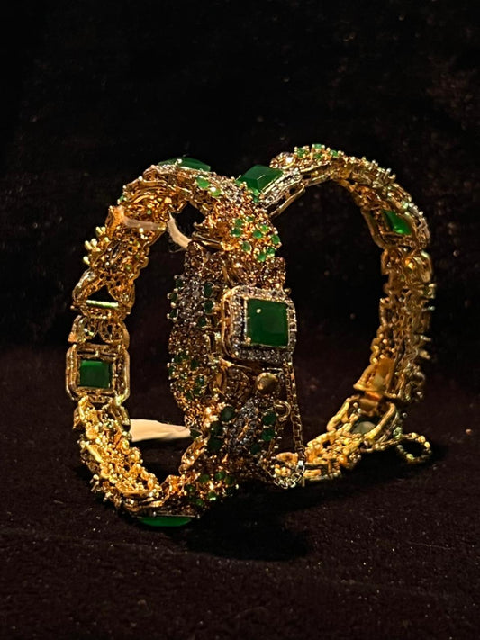 Gold-Plated Designer Bangles with Crystal Detailing | Elegant Wedding & Bridal Jewelry