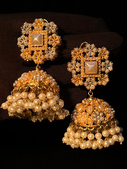 Elegant Unique Design Gold Plated Pearl Earrings for Girls/Women