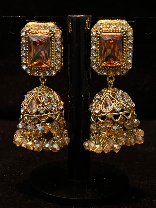 Golden Vintage Drop Earrings with Crystal Accents – Traditional Jewelry
