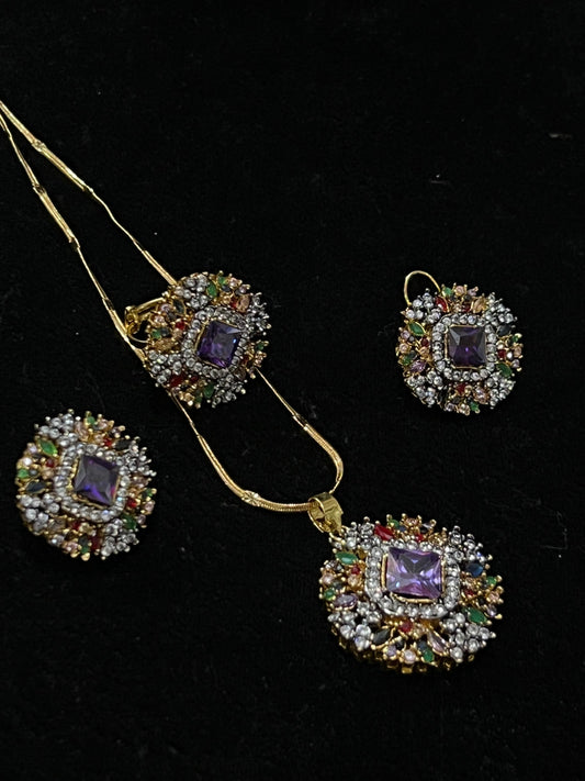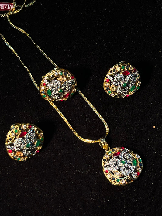 Elegant Colorful Crystal Necklace and Earring Set - Vibrant Antique Style Jewelry for Women