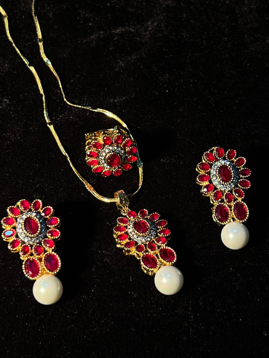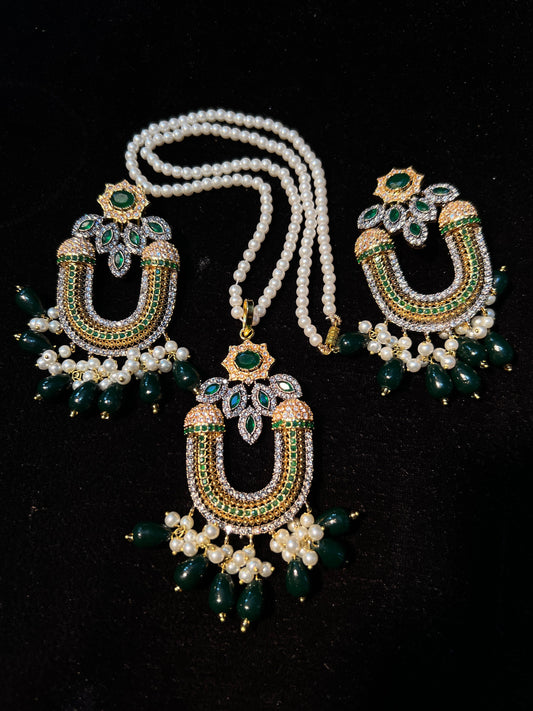 Elegant Pearl & Gemstone Bridal Jewelry Set for Women - Traditional Bridal Necklace and Earrings Set