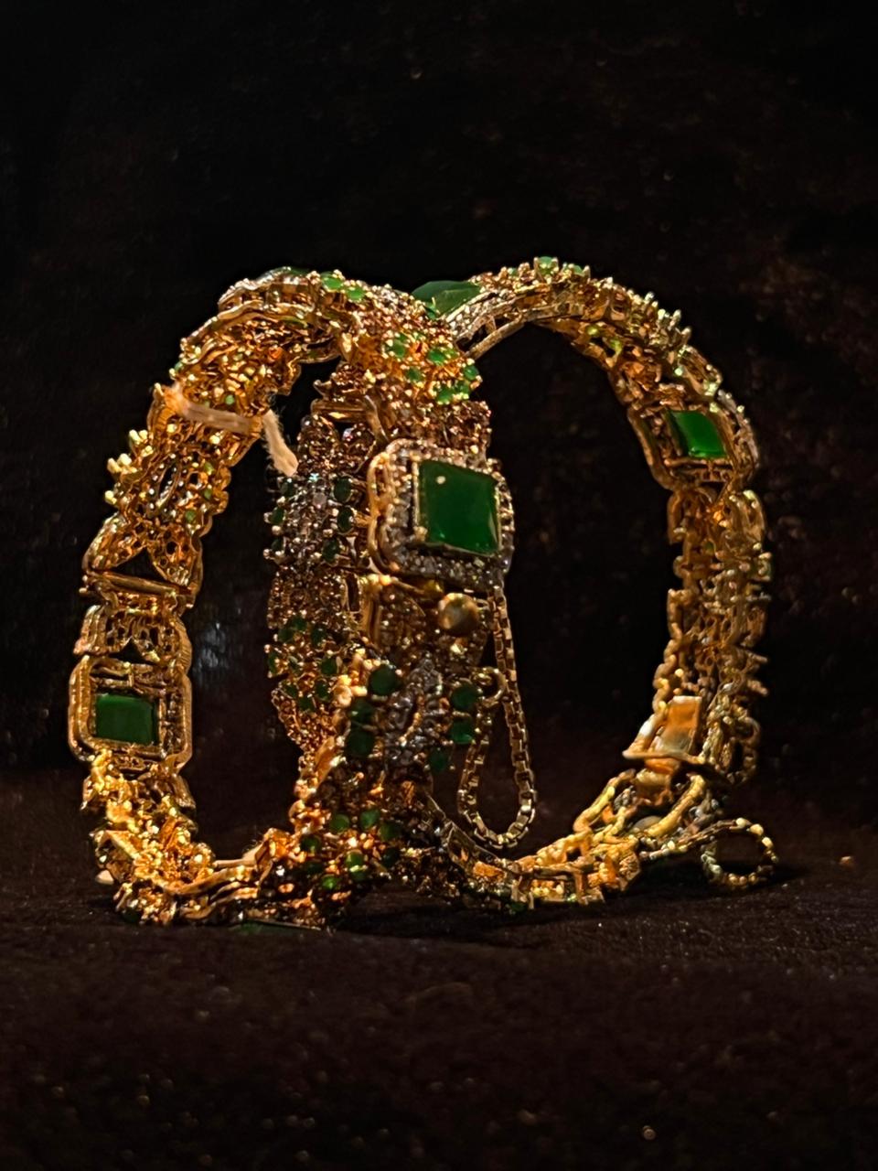 Premium Gold Plated Glitter Stones Bangle: Luxurious design with shimmering glitter stones and lasting 24K gold plating for a glamorous finish. Open shipment parcel available. Delivery time will be 15 to 20 days.